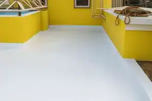 Roof coatings should not be confused with deck coatings. Deck coatings are traffic bearing – designed for waterproofing areas where pedestrian (and in some cases vehicular) traffic is expected. Roof coatings will only waterproof the substrates but will not withstand any kind of ongoing use by people or vehicles (such as walkways, patios, sundecks, restaurants, etc.).